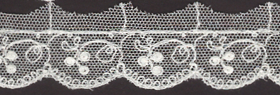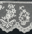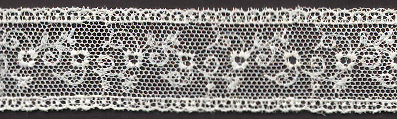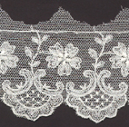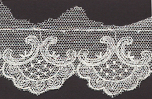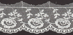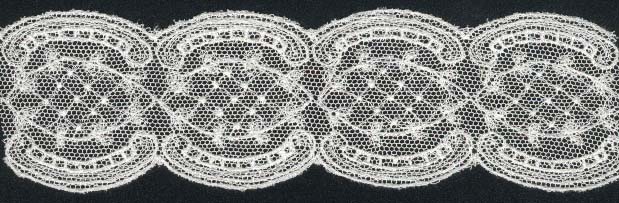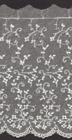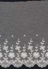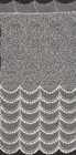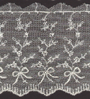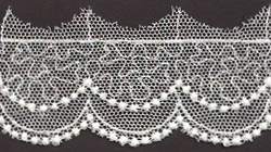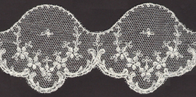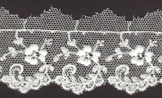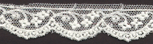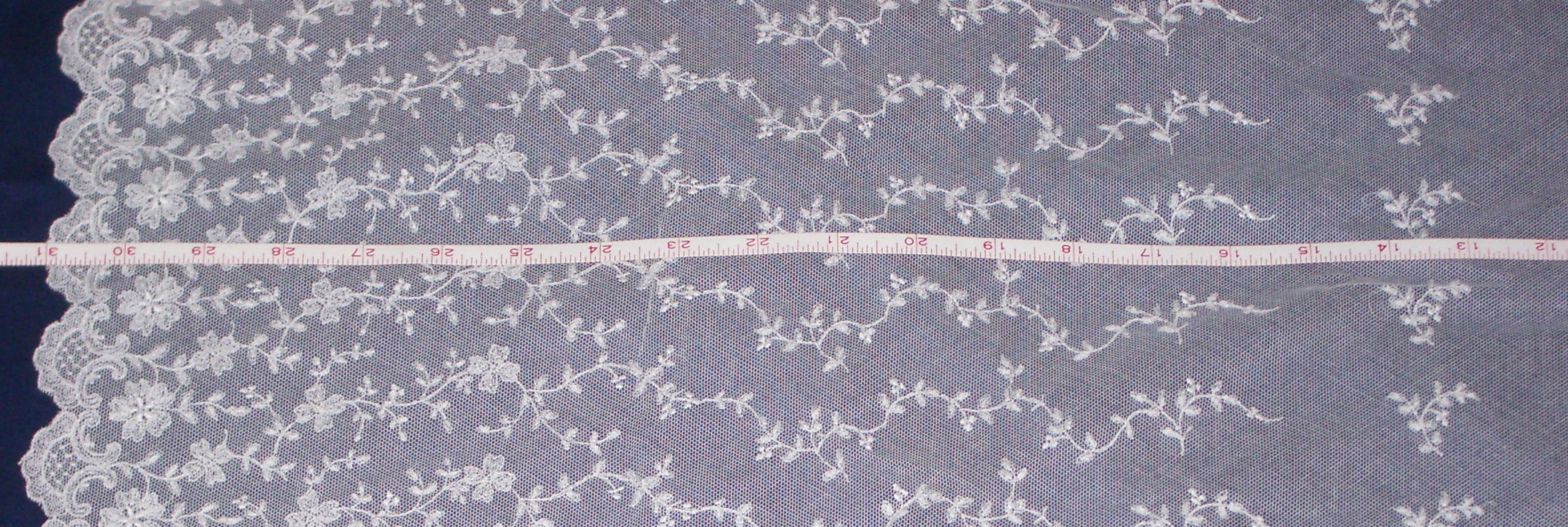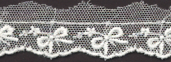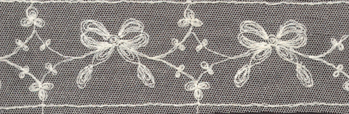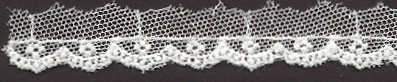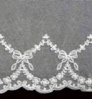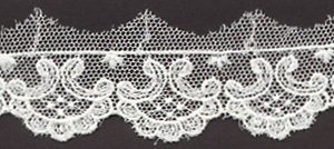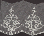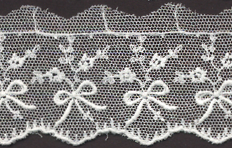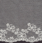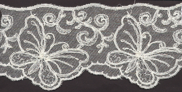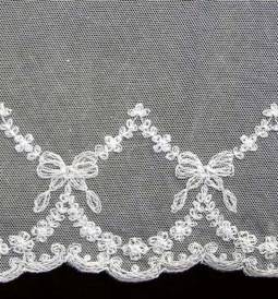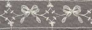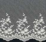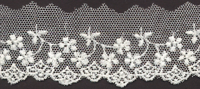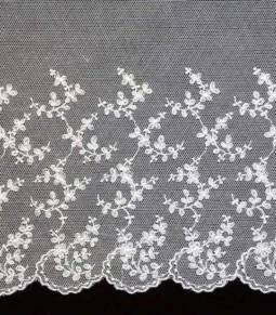 The background is cotton bobbinet over which a design is embroidered. All of the embroidered nettings featured here are cotton embroidery on cotton bobbinet unless otherwise noted. Where noted, some ivory nettings use rayon or viscose thread in ivory and this will give a shiny reflective appearance to the embroidery rather than the matte look of the cotton embroidery. The ivory colour of the embroidered netting is often called old white or English white. It is a very soft ivory that is similar to a linen or wool white. When the embroidered netting is cotton embroidery on cotton bobbinet it can be turned into white by soaking in a solution of Napisan or hot Biz (USA) for 5 minutes or so. It can also be dyed black or any other colour. Be prepared for some shrinkage and ease out to size after towel drying, especially around the embroidery, and ease again when nearly dry as you iron it. (Prices in $AUD per metre unless noted otherwise, minimum quantity 20cm) | |||||||||